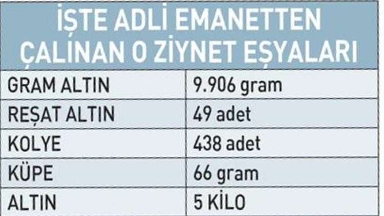Kasaların boş olduğunun görülmesi üzerine yapılan detaylı incelemede, soruşturma ve kovuşturma dosyalarına ait yaklaşık 50 kilogram gümüş ve 25 kilogram altının kayıp olduğu belirlendi.