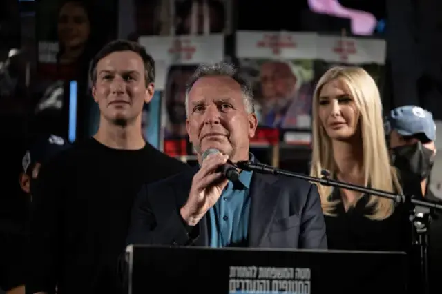 Sahnede Witkoff’un arkasında yer alan Trump’ın kızı Ivanka Trump ile damadı Jared Kushner’ın bu sırada tebessümle bakışması dikkati çekti.
