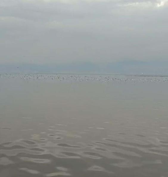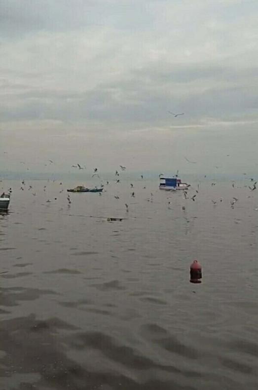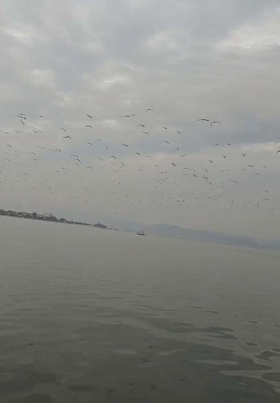 Su yüzüne çıkan balıklarla beslenen martılar ise bir vatandaş tarafından cep telefonu kamerasıyla kaydedildi.