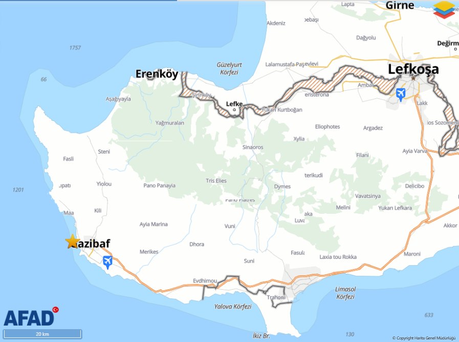 Afet ve Acil Durum Yönetimi Başkanlığı (AFAD) internet sitesinden edinilen bilgilere göre Güney Kıbrıs Rum bölgesinde 5,4 büyüklüğünde bir deprem meydana geldi.