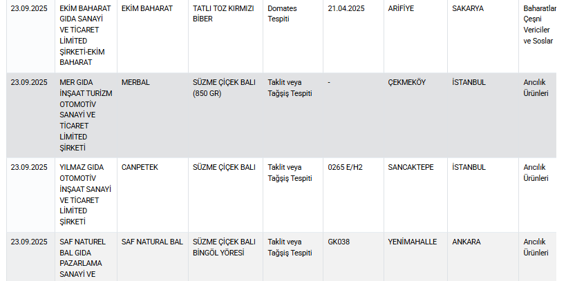 İŞTE 23 EYLÜL 2025 TAKLİT VE TAĞŞİŞ YAPILAN ÜRÜNLER TAM LİSTE: