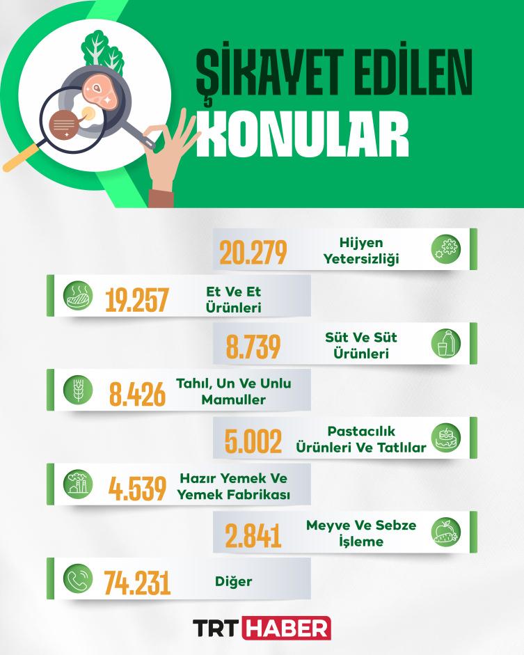 2024’te olduğu gibi 2025’te de listenin başında ‘hijyen yetersizliği’ ve ‘et ve et ürünleri’ konusundaki başvurular yer aldı.